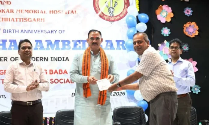 पंडित जवाहरलाल नेहरू स्मृति चिकित्सा महाविद्यालय एवं डॉ. भीमराव अम्बेडकर स्मृति चिकित्सालय, रायपुर में आज संविधान निर्माता डॉ. भीमराव अम्बेडकर की जयंती हर्षोल्लास एवं गरिमामय वातावरण में मनाई गई। इस अवसर पर आयोजित कार्यक्रम में मुख्य अतिथि के रूप में स्वास्थ्य मंत्री श्री श्याम बिहारी जायसवाल उपस्थित रहे। उन्होंने चिकित्सालय परिसर में स्थित बाबा साहेब की प्रतिमा पर पुष्प अर्पित कर उनके संदेशों को याद किया।