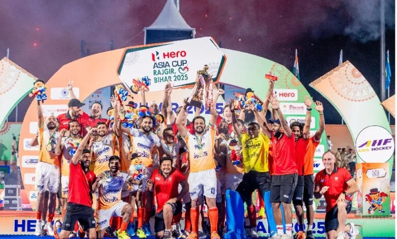 दिल्ली। प्रधानमंत्रीनरेन्द्र मोदी ने बिहार के राजगीर में आयोजित पुरुष हॉकी एशिया कप 2025 जीतने पर भारतीय टीम को बधाई दी है। श्री मोदी ने कहा कि यह जीत और भी खास है क्योंकि भारतीय टीम ने गत विजेता दक्षिण कोरिया को हराया है।