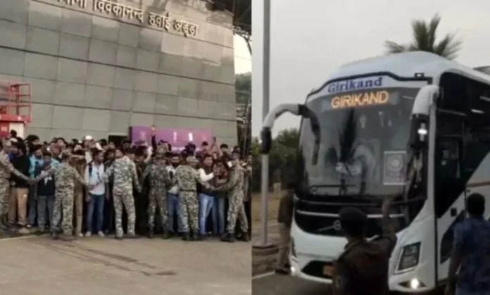 छत्तीसगढ़ की राजधानी रायपुर में भारत और दक्षिण अफ्रीका के बीच होने वाले वनडे क्रिकेट मैच की तैयारियां जोर-शोर से चल रही हैं। ये मैच रायपुर के स्टेडियम में BCCI को हैंडओवर किए जाने के बाद पहली बार आयोजित किया जा रहा है। इस बीच रांची में पहले एकदिवसीय मुकाबले में शानदार जीत दर्ज करने के बाद टीम इंडिया रायपुर पहुंच गई है। वहीं भारत के बाद अब दक्षिण अफ्रीका की टीम भी रायपुर एयरपोर्ट पहुंच गई है। सभी खिलाडी चार्टर्ड प्लेन से सीधे माना स्थित विवेकानंद एयरपोर्ट पर लैंड कर चुके है।