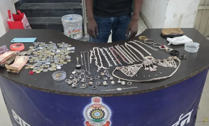 तलाशी लेने पर उसके पास सोने-चांदी के जेवरात, नगदी नोट एवं सिक्के मिले। कड़ाई से पूछताछ करने पर उसने बताया कि उक्त सामान उसने देवेन्द्र नगर के एक सूने मकान में चोरी कर हासिल किया है। उसकी निशानदेही पर पुलिस टीम देवेन्द्र नगर पहुँचकर मकान मालिक चंद्रभान सिंह ठाकुर से संपर्क कर जाँच कराई, जिन्होंने अपने घर में चोरी होना पुष्टि की।